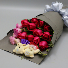 19朵红白粉香槟玫瑰花成都生日鲜花速递同城双流郫县温江绵阳德阳