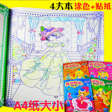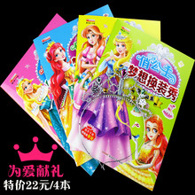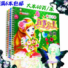 白雪美少女公主房间涂色填色本女孩换装换衣服书 儿童贴纸书包邮