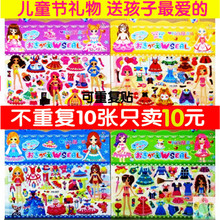 韩国创意公主换装儿童卡通立体女孩换衣服泡泡贴纸手工反复粘纸贴