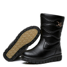 冬季棉鞋妈妈雪地靴中老年女棉靴防滑老人皮面雪地靴女中筒靴平底