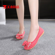 老北京布鞋女鞋平底单鞋休闲鞋豆豆鞋蝴蝶结浅口百搭平跟女士布鞋