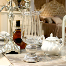 银色高脚透明玻璃花瓶 欧式玻璃花器 家居饰品 装饰花瓶 水培花瓶