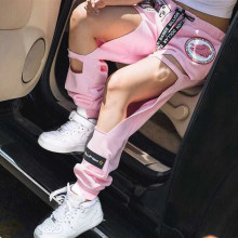 2015年新款嘻哈爵士街舞ds演出欧美徽章刺绣贴标性感破洞休闲长裤