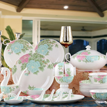 碗盘套装 景德镇陶瓷器56头骨瓷餐具套装 韩式釉中彩家用结婚送礼
