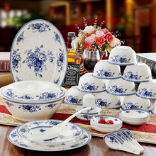 碗碟盘子套装 景德镇陶瓷器56头骨瓷餐具套装 韩式釉中青花瓷餐具