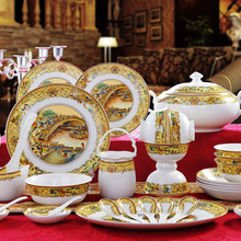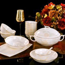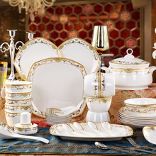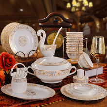 餐具套装 景德镇陶瓷器骨瓷餐具套装 欧式家用金边碗碟碗盘套装