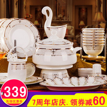 碗套装 景德镇餐具瓷器套装 欧式金边家用骨瓷碗盘套装 新婚送礼