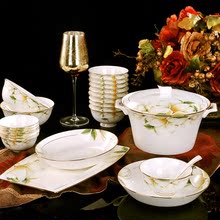 餐具套装 景德镇陶瓷器骨瓷餐具套装 韩式金边家用碗碟盘子 送礼