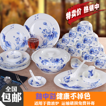 景德镇餐具套装青花56头骨瓷碗碟盘 釉中彩陶瓷器可微波包邮送礼