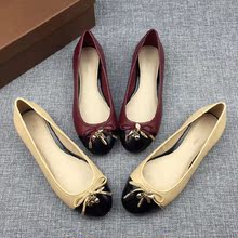 秋季蝴蝶结金属装饰平底羊皮单鞋休闲女鞋
