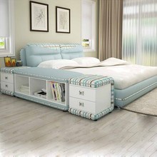 榻榻米床皮床真皮床婚床 主卧软床双人床1.8米 创意个性床现代