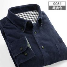 秋装新款中青年男士纯棉长袖衬衫 全棉修身复古灯芯绒衬衣 藏青色