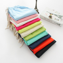 松紧腰抽绳系带棉麻女士九分裤宽松显瘦糖果色学生哈伦裤休闲女裤