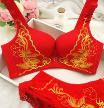 本命年大红凤凰刺绣结婚文胸套装 无钢圈无痕聚拢性感调整型内衣