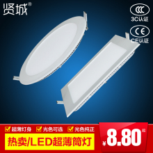 贤城 超薄led筒灯3W4W6W9W12W15W18W25W明/暗装方/圆形面板灯开孔
