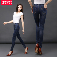 2016秋冬加长高腰牛仔裤女长裤 韩国紧身女裤 高弹力显瘦小脚裤子