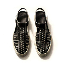 JINIWU吾倪季重拳设计铆钉做旧白色鞋底手工牛皮潮爆包头罗马凉鞋