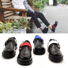 JINIWU2017多彩橡胶横带撞色潮流手工厚底圆头系带百变欧美皮鞋男