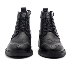 JINIWU2106经典布洛克雕花纯手工全粒面牛皮百搭高帮系带纯黑男靴