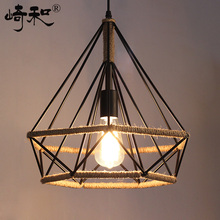 美式乡村复古创意麻绳吊灯 工业风铁艺钻石鸟笼loft吧台餐厅吊灯