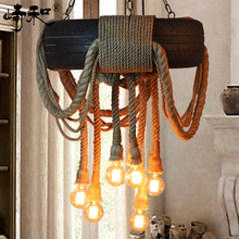 美式复古服装店装饰麻绳轮胎吊灯 工业风创意咖啡厅仿古酒吧吊灯