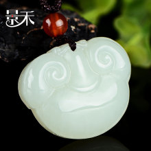景禾 和田玉吊坠 宝宝款如意锁 保平安长命百岁锁小孩玉坠 带证书