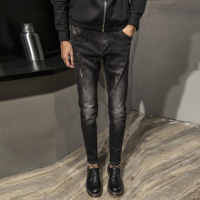 韩国东大门韩版牛仔裤男小脚裤做旧潮流长裤男士秋冬修身款牛仔裤