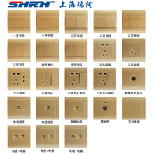 瑞河香槟金墙壁电源开关面板插座组合套电视电脑电话单控双控多选