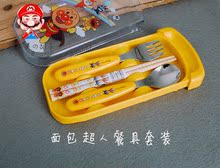 日本面包超人儿童便携餐具不锈钢宝宝叉子勺子筷子套装 正品特价