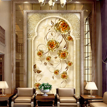 壁画定制欧式3d立体玄关过道走廊墙纸 背景墙竖版浮雕壁纸 玫瑰花