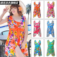 韩国加肥加大码情侣泳衣女胖mm200斤遮肚保守连体裙式平角温泉