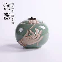 润器 龙泉青瓷茶叶罐 密封哥窑存储普洱罐中号功夫茶具陶瓷罐包邮