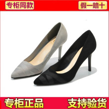 圆漾2017浅口尖头中跟女鞋绒面细跟通勤OL时尚单鞋女春1017101808