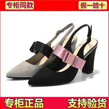 圆漾2017春季新款尖头绒面单鞋细跟时尚女鞋拼色高跟鞋1017101807