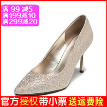 达芙妮2016秋季女鞋尖头浅口女单鞋婚鞋亮面水钻高跟鞋1016404089