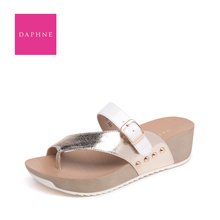 达芙妮2016夏季亮面厚底夹脚女凉鞋1016303073坡跟沙滩鞋拖鞋女