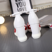 圣恩熙2017春季内增高女鞋8cm真皮涂鸦彩色系带休闲高帮松糕单鞋