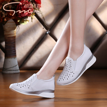 圣恩熙隐形 内增高女鞋夏 百搭真皮镂空单鞋2016新款高帮休闲女鞋