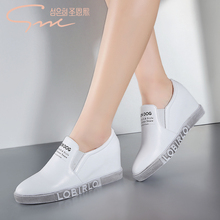 圣恩熙2017春季真皮隐形内增高女鞋高帮运动休闲小白色10cm单鞋子