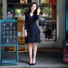 gagazhang春秋大牌个性裙摆设计收腰显瘦气质高品质黑色连衣裙