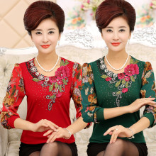 中老年女装春装妈妈装长袖T恤雪纺衫上衣中年大码夏季打底衫服装