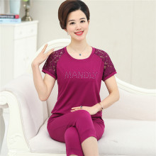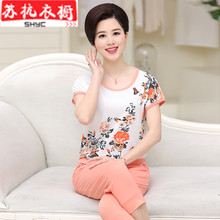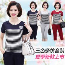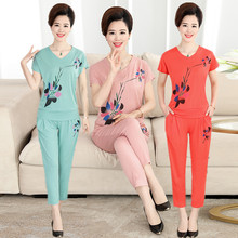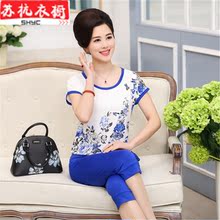 中老年女装夏装套装中年妈妈装短袖t恤女七分裤女士休闲夏季服装