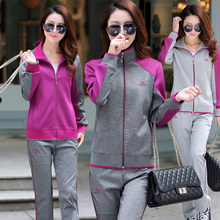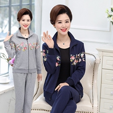 中老年运动服套装女春秋2017长袖两件套妈妈装大码中年运动套装春