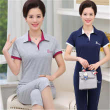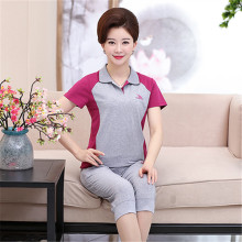 夏季新款中年妈妈装短袖休闲运动服套装中老年女装纯棉T恤两件套