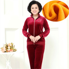 中老年运动套装女秋冬季加绒纯棉妈妈大码休闲套装中年加厚运动服