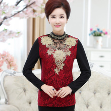 加绒中老年女装秋长袖衬衫女上衣中年妈妈装小衫蕾丝打底衫针织衫