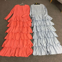 欧美原单 棉绸长袖千层蛋糕仙女超长拖地连衣裙 女神范花边长裙