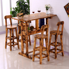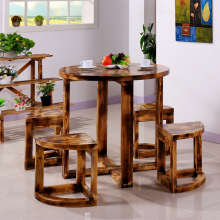 2017新款实木碳化桌椅套件防腐木火烧木桌椅酒吧桌凳吧台高脚桌凳