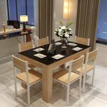 餐桌椅组合6人现代简约吃饭桌子家用长方形小户型钢化玻璃餐桌