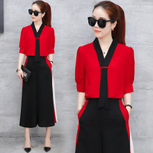 夏季时尚2017新款两件套阔腿裤气质宽松显瘦短袖雪纺套装潮女包邮